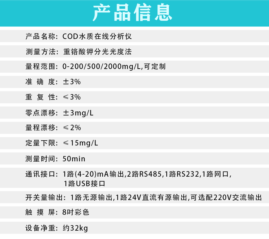 化學需氧量(又稱COD)是指在一定條件下,用強氧化劑將水樣中有機物和無機還原性物質氧化時所消耗氧化劑相對應氧的質量濃度,COD也是反映水體受有機物和無機還原性物質污染程度的重要指標。